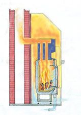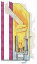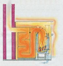 Die noch heißen Heizgase aus dem Feuerraum durchströmen einen Kesselkörper, der direkt auf dem Feuerraum aufgesetzt ist. Diese Lösung ist ideal, wenn neben dem Heizkamineffekt die Zentralheizung unterstützt werden soll.